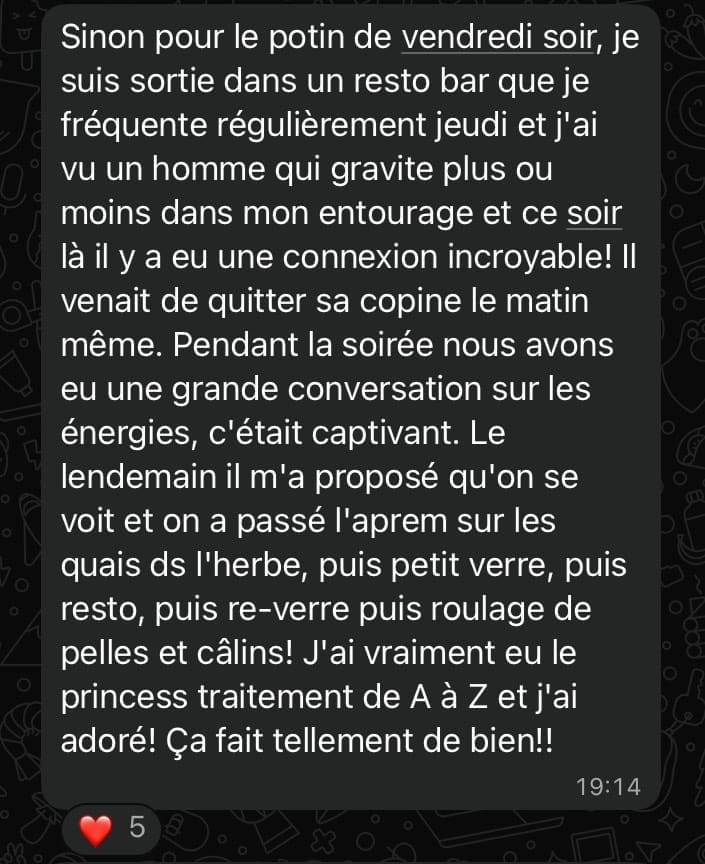 Des pratiques accessibles Ă toutes, mais ultra puissantes (je te laisse lire les tĂ©moignages đ), qui vont te permettre d'opĂ©rer un changement radical et dĂ©finitif dans tes relations amoureuses.
